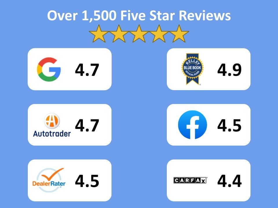 As a family-owned and operated company for over 25 years, our priority is to offer customers a better car buying experience. This starts with our best no-hassle price upfront so you can avoid the traditional back-and-forth negotiation. We aim to be trusted consultants, providing the necessary information and answering questions to ensure you find the perfect vehicle for your needs. With over 1,500 Five Star Reviews, we would love the opportunity to make your next car buying experience the best one yet.